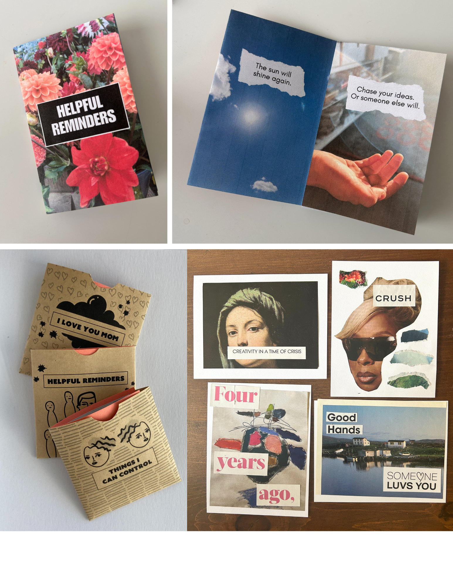 Experimenting with contrasting images, limited resources and curiosity, allows unexpected messages to appear. Like journalling, writing and creating without a pre determined purpose, is a form of meditation.